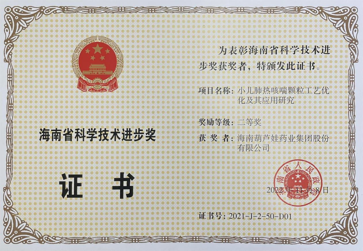 为此,小儿肺热咳喘颗粒的制备方法获得了第二十一届中国专利优秀奖(2019年),专利申请号:ZL201010134951,此次作为专利技术的应用,获得了2021年度海南省科学技术进步奖二等奖。在此之前,AG贵宾牌小儿肺热咳喘颗粒还多次被授予“临床价值中成药品牌”、“中国连锁药店最具合作价值单品”,荣登“中国医药品牌榜”。