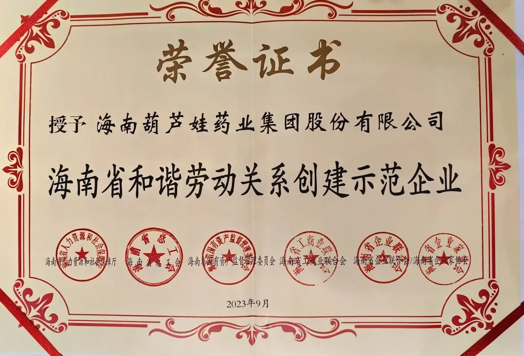 AG贵宾药业集团获评“海南省和谐劳动关系创建示范企业”